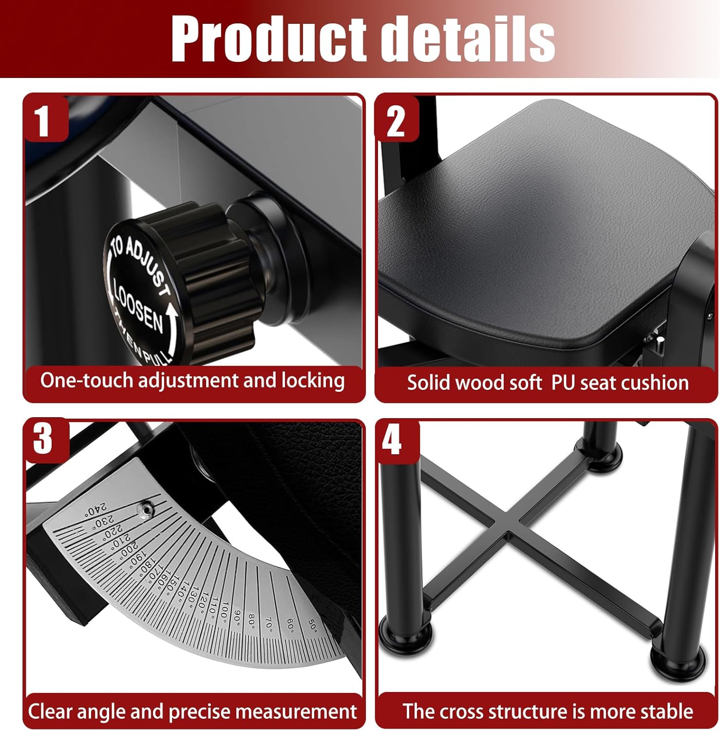 Comfortable Design: Features padded seat and leg supports for a comfortable stretching experience.